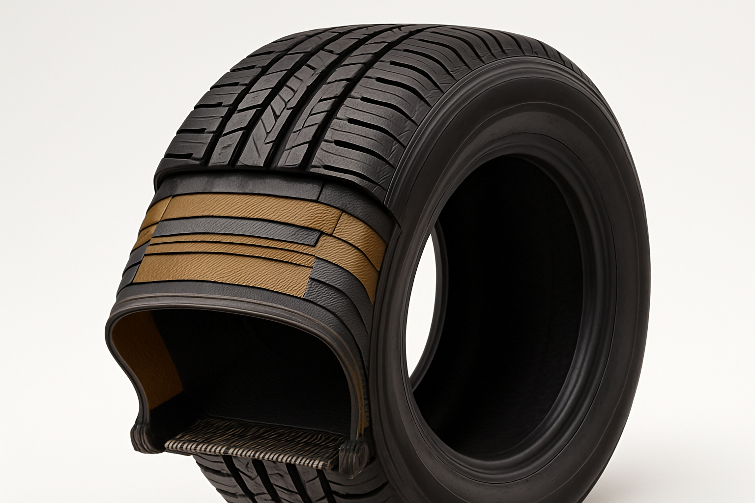 Denk aan een tuinslang. Als je water door de slang laat lopen, wil hij uitzetten. Precies hetzelfde gebeurt met een band tijdens het rijden. De warmte en druk willen de band uitzetten, maar die staalgordels houden alles op zijn plek.