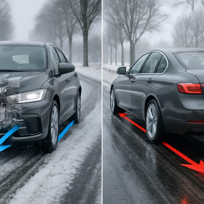 Snelle vergelijking: voorwielaandrijving versus achterwielaandrijving bij winterse omstandigheden