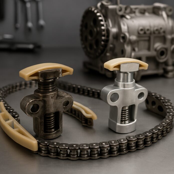 De hydraulische distributiekettingspanner werkt op motoroliedruk. Wanneer eigenaren te lang wachten met een motorolie verversing, verslijt de spanner veel sneller. Vervuilde olie kan de kleine kanalen in het spanmechanisme verstoppen, waardoor de drukopbouw faalt.