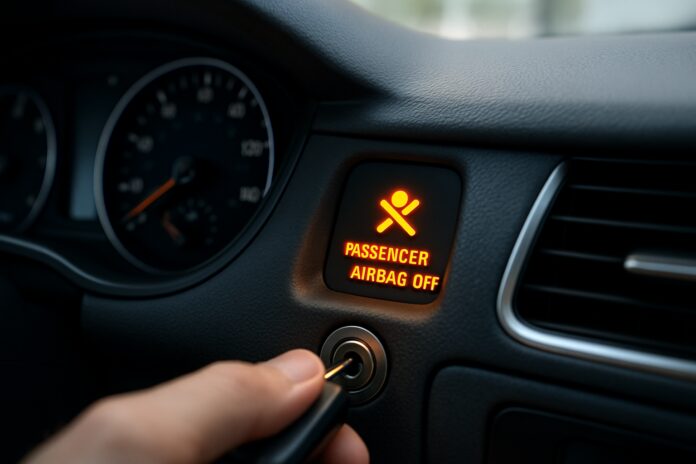 De meest voorkomende methode is via een sleutelschakelaar in het dashboardkastje of aan de zijkant van het dashboard. Je vindt meestal een klein sleufje met de tekst ‘AIRBAG OFF’ of een pictogram van een airbag met een streep erdoor. Steek de autosleutel of een speciale sleutel in deze opening en draai naar de ‘OFF’ positie.