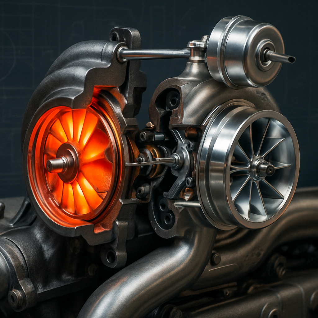 De turbine wordt aangedreven door uitlaatgassen die uit de motor komen. Deze hete gassen draaien de turbine met enorme snelheden – vaak tussen de 100.000 en 250.000 toeren per minuut. Aan de andere kant van de as zit de compressor die verse lucht aanzuigt en onder druk in de motor perst.