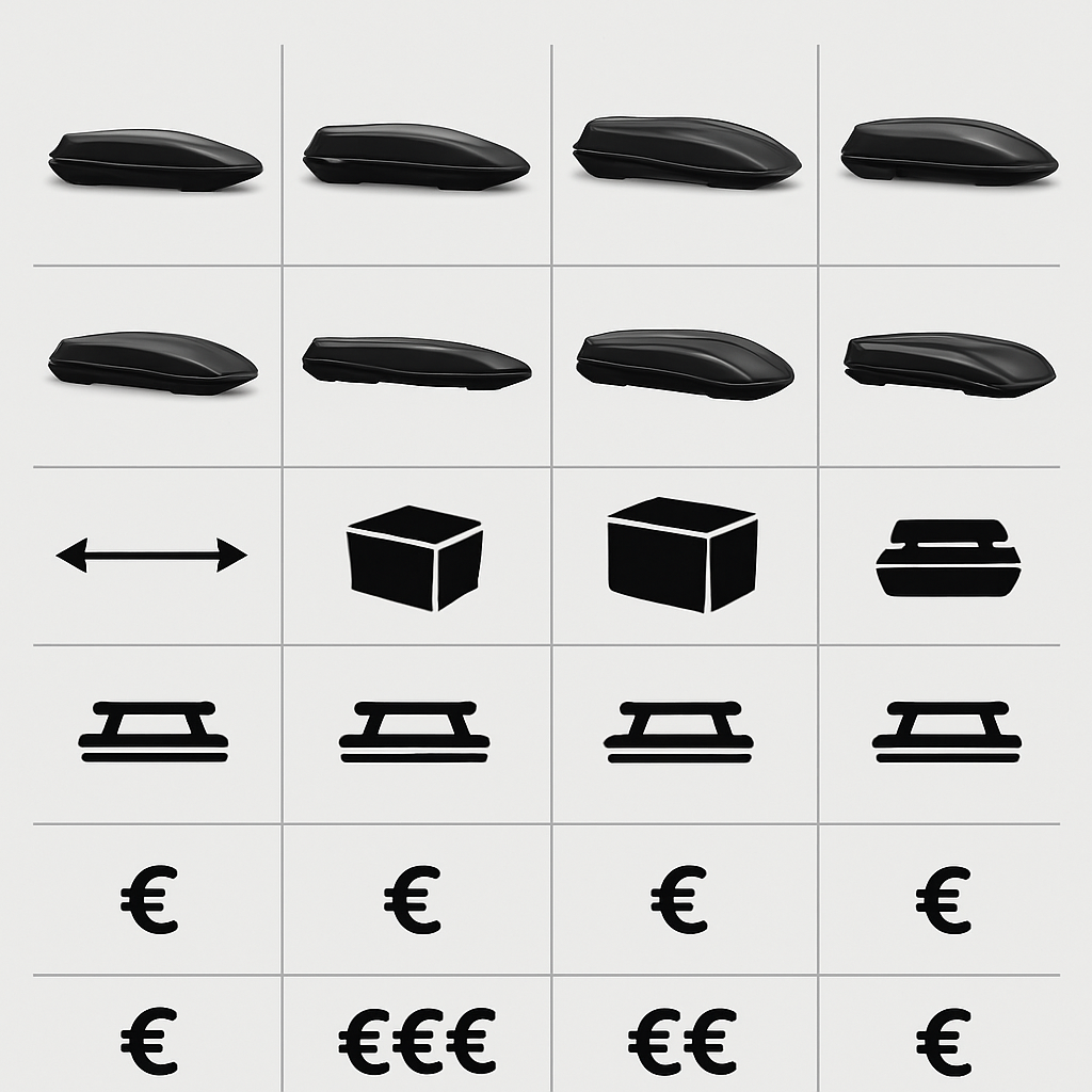 Vergelijkingstabel van dakkoffers